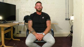 Chris. 41yr old. Lorry driver. Dominant bearded hetero Chris gives us a hard stare while we demand that he present every inch of his tattooed naked body. |