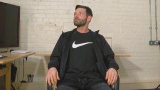 Chris. 41yr old. Lorry driver. Dominant bearded hetero Chris gives us a hard stare while we demand that he present every inch of his tattooed naked body. |
